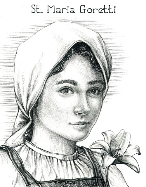 If you don’t know the story of Maria Goretti, I recommend doing a little research. The headline version: 11-year-old girl defends her virtue from evil-intending neighbor, who stabs her to death, but she forgives him with her last breaths and he goes to prison, has a massive conversion, is released and goes into religious life and, perhaps, will one day be a saint as well.